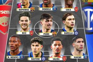 詹俊在社媒写道:外媒选出的本季欧冠四强球员最佳阵容。最难选的恐怕就是右边锋,萨卡本季欧冠5球2助攻,亚马尔则是4球3助攻,不相上下.............. ​​​