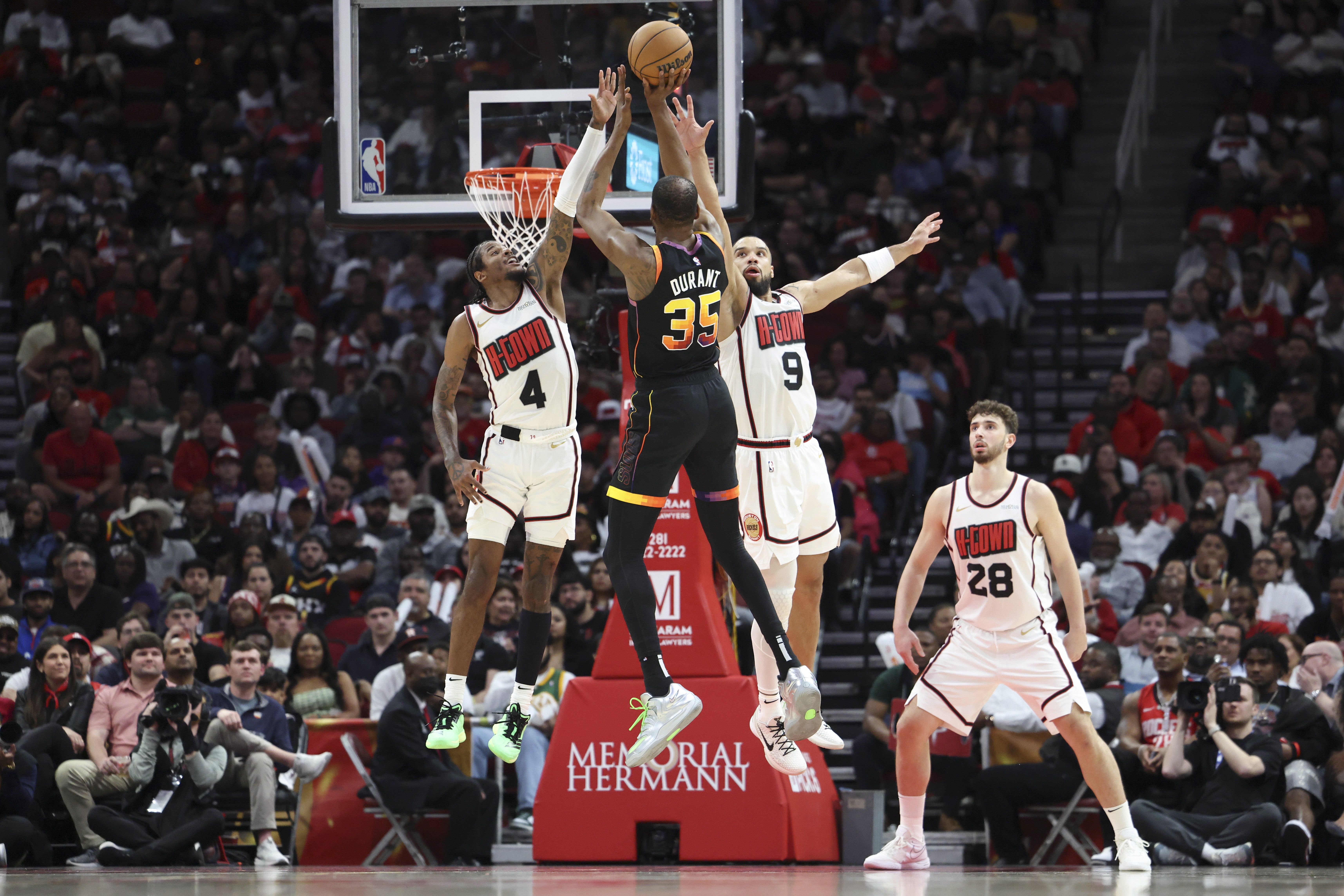 火箭队喜欢用范弗里特做掩护人。在这方面,他是最好的后卫之一,但为在低位背身单打的申京创造换防机会是一回事。而为一位名人堂级别的神射手创造出空位出手机会则是另一回事。反向挡拆只有在体型更大的持球手是一位受人尊敬的组织者时才能真正奏效,而且杜兰特18.9%的助攻率(超过了88%的前锋球员)将迫使防守方不得不进行判断。